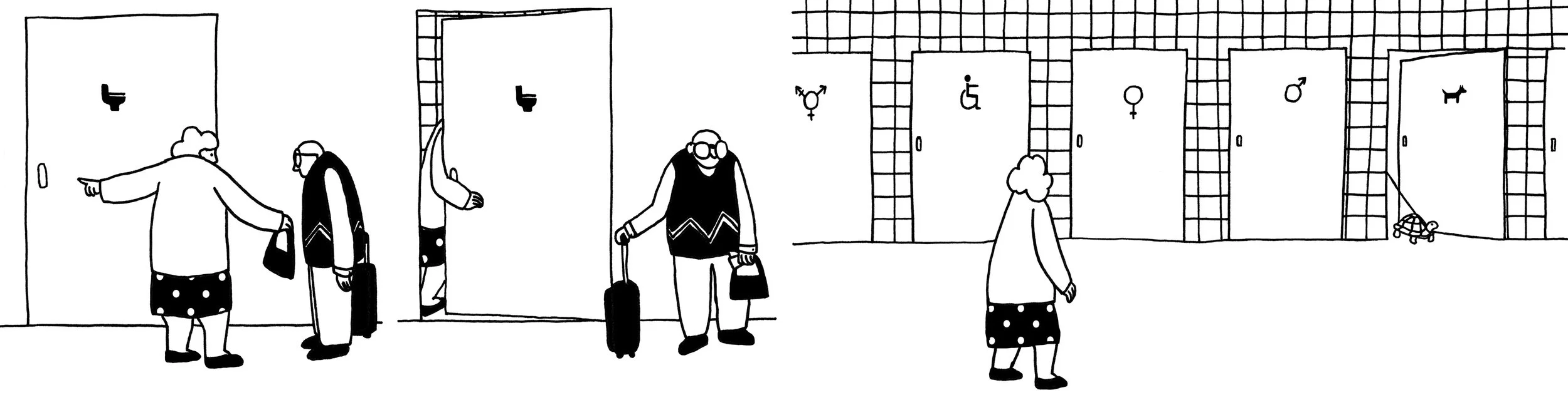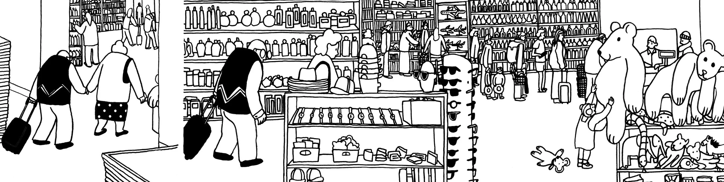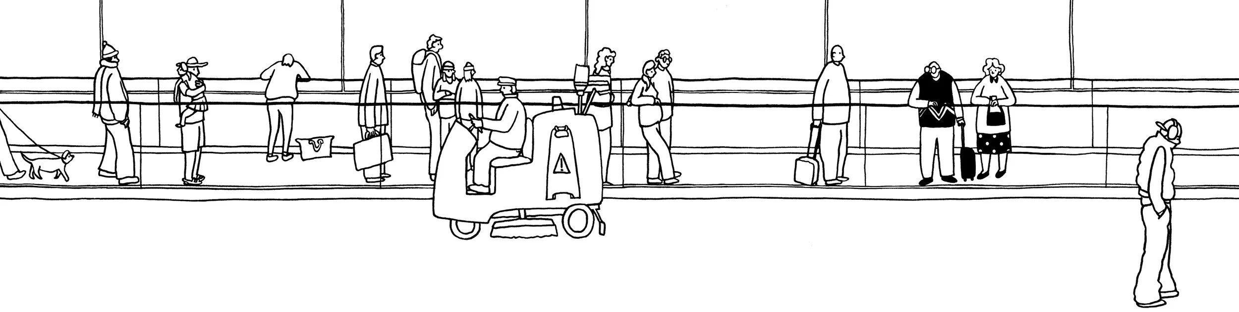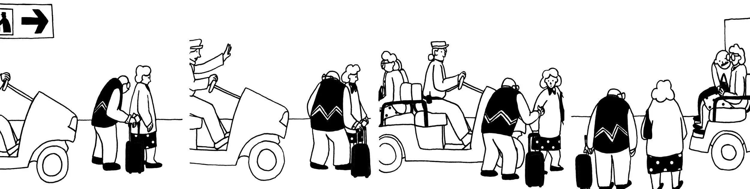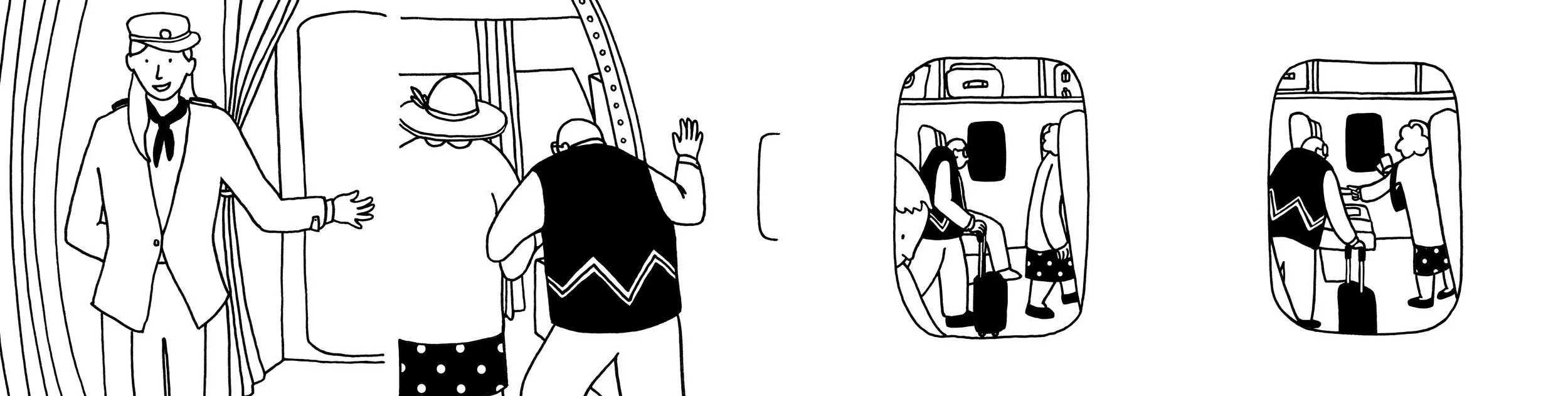 Ein altes Paar hat eine aufregende Reise vor sich. Die letzten Flugzeugferien liegen bereits viele Jahre zurück. Wir begleiten sie durch den Flughafen, einen Ort, an dem sich über die letzten Jahrzehnte vieles verändert hat und dessen moderne Technik in jeder Ecke lauert. Die wortlose Geschichte handelt vom Warten und vom Stress, von Verwirrung, vom Beobachten und vom Zusammenhalt.